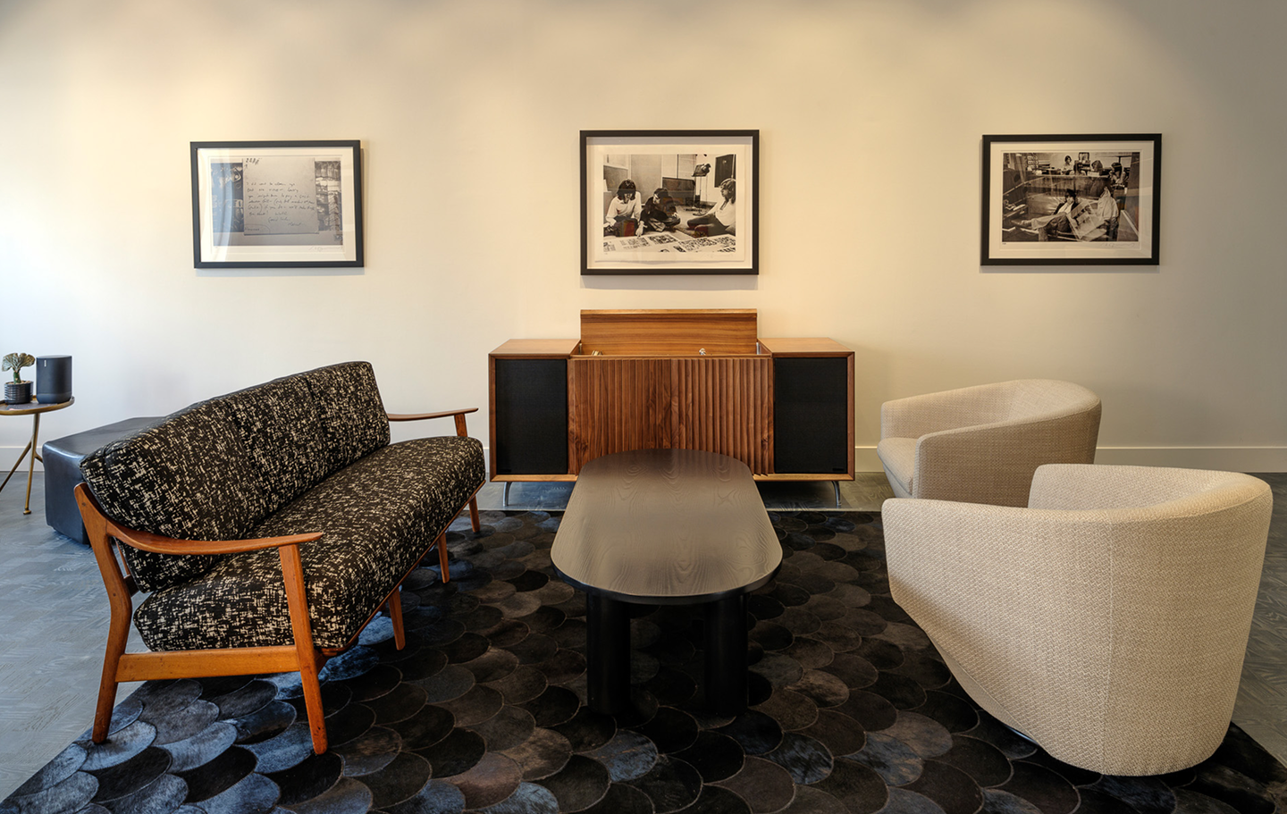 Beyond its role as a listening space, the studio doubles as a gallery. The current installation highlights iconic Blue Note Records album artwork accompanied with its original photography by label co-founder Francis Wolff. The gallery is always evolving, with a new installation coming very soon