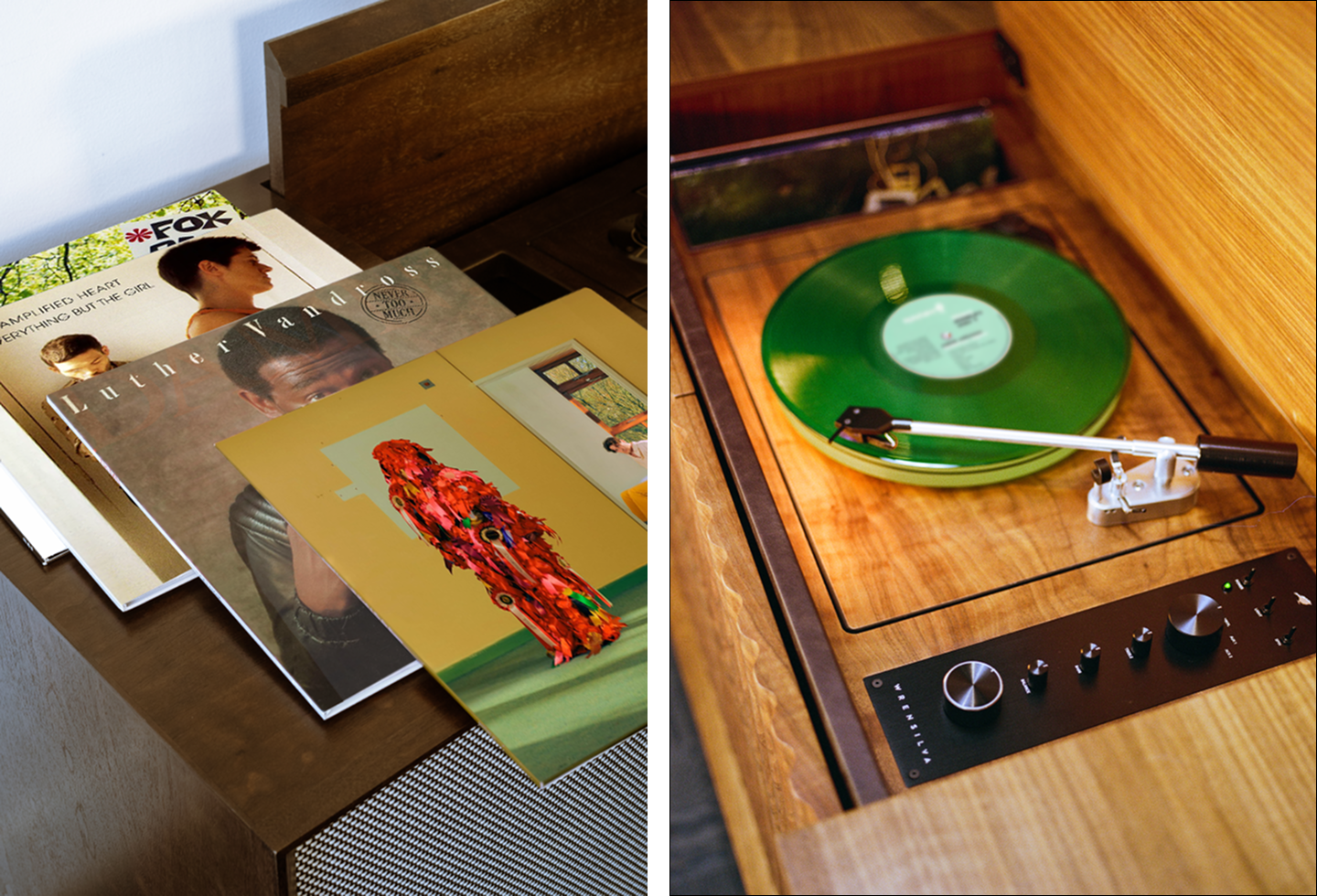 Back inside the cabin, as snow gear is set aside and the warmth settles back in, the record console comes into play.